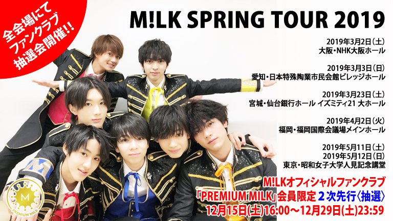 12月15日(土)16:00よりM!LKオフィシャルファンクラブ「PREMIUM MILK」会員限定2次先行受付<抽選>がスタート!!