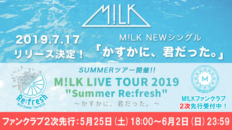 【FC2次受付情報】「M!LK LIVE TOUR 2019 "Summer Re:fresh" 〜かすかに、君だった。〜」開催決定!!
