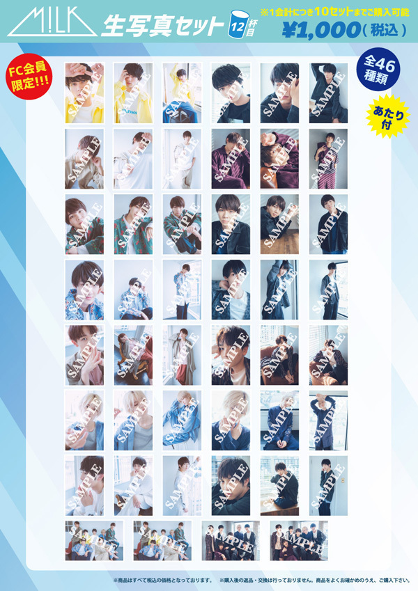 M!LK 「M!LK LIVE TOUR 2019 ”Summer Re:fresh” 〜かすかに、君だった。〜」生写真セット12杯目、オフィシャルグッズ&「M!LK 塩﨑太智 生誕祭『ラスト十代。』」オフィシャルグッズ、生写真セットのスタダ便 事後通信販売決定!!