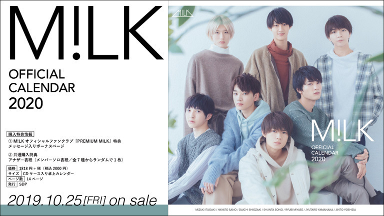 M!LK、2020年のオフィシャルカレンダー「M!LK OFFICIAL CALENDAR 2020」が、2019年10月25日(金)発売することが決定!!