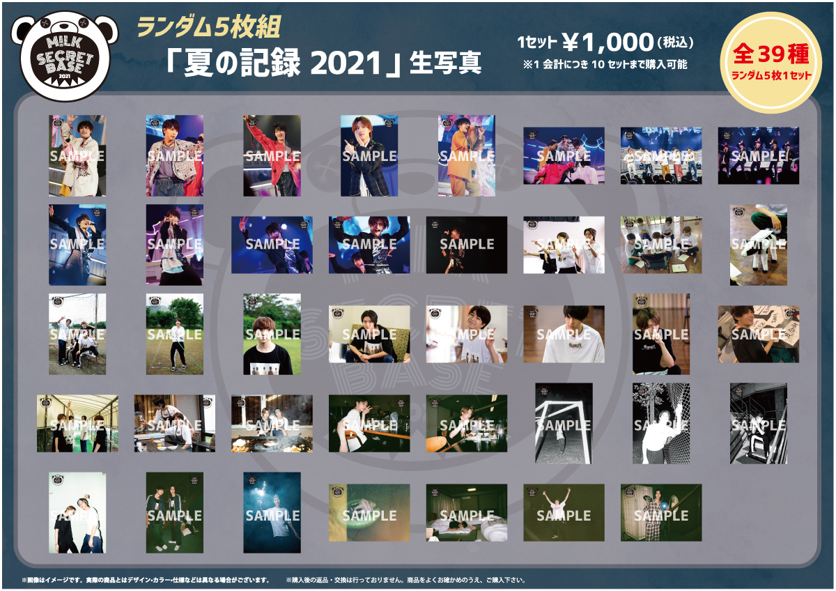 ※期間限定POP UP STORE「M!LK SECRET BASE 2021」で販売した、選べる!! 「夏の記録2021」生写真がランダム4枚組になった生写真セットです。