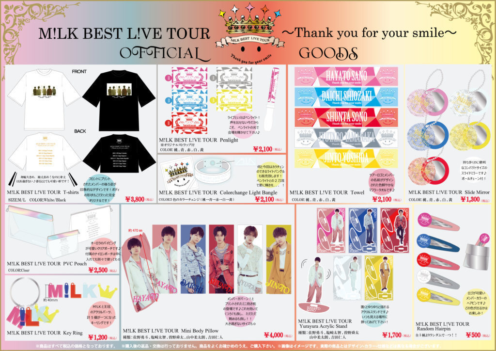 「M!LK BEST L!VE TOUR 〜Thank you for your smile〜」オフィシャルグッズ&生写真セット通信販売、スペシャル福袋「Smile Bag 2021」のお知らせ