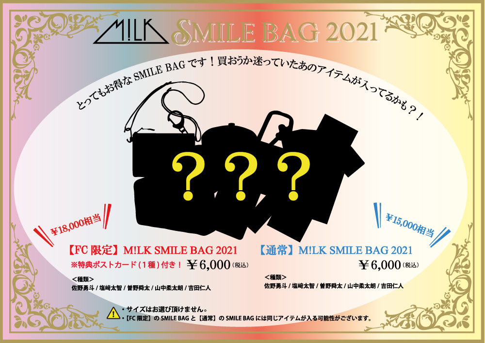 - 【FC会員限定】M!LK Smile Bag 2021 (特典ポストカード付!) ¥6,000(税込)