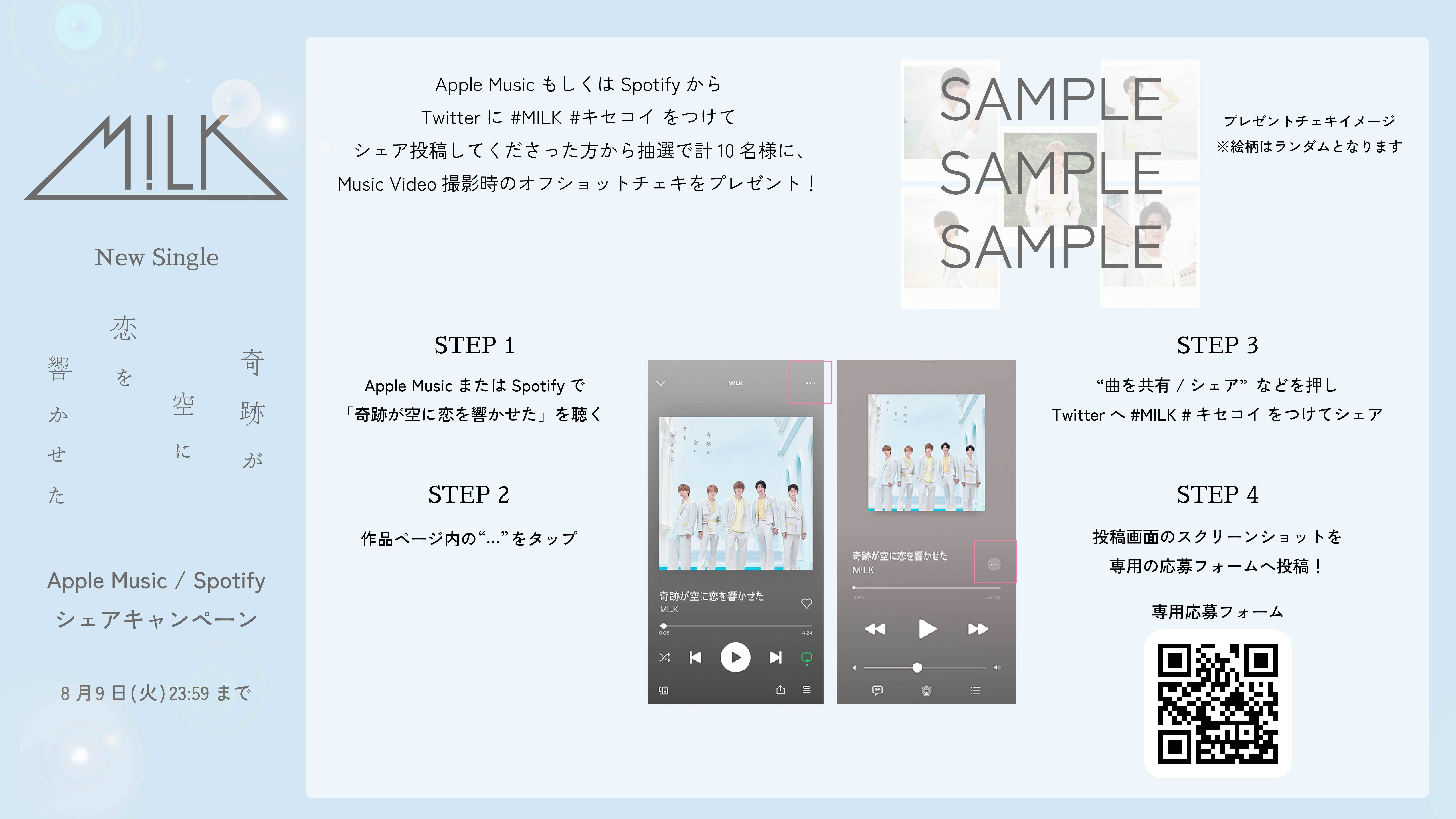 ハッシュタグ#MILK #キセコイをつけてTwitterで楽曲の感想とともにシェア投稿してくださった方の中から