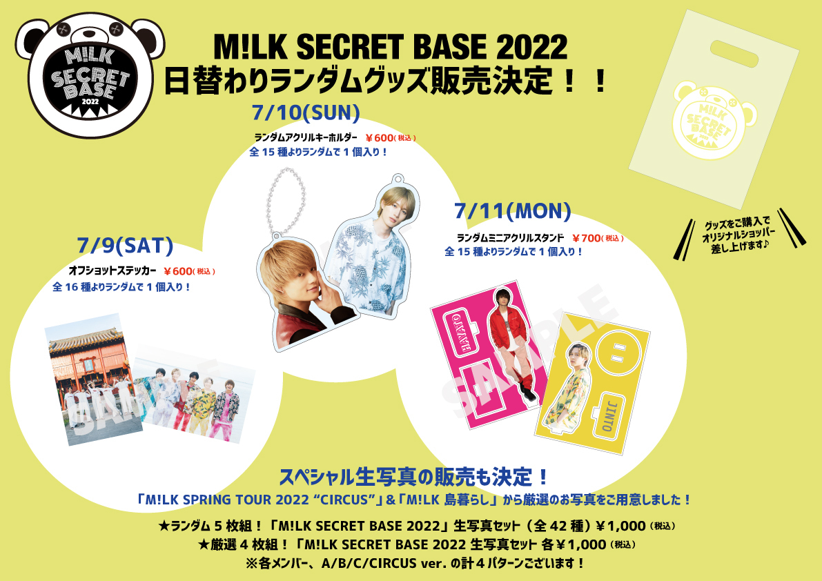 そして!「M!LK SECRET BASE 2022」の会場では、「M!LK SPRING TOUR 2022 “CIRCUS”」&「M!LK 島暮らし」生写真と日替わりオリジナルランダムグッズの販売も!!