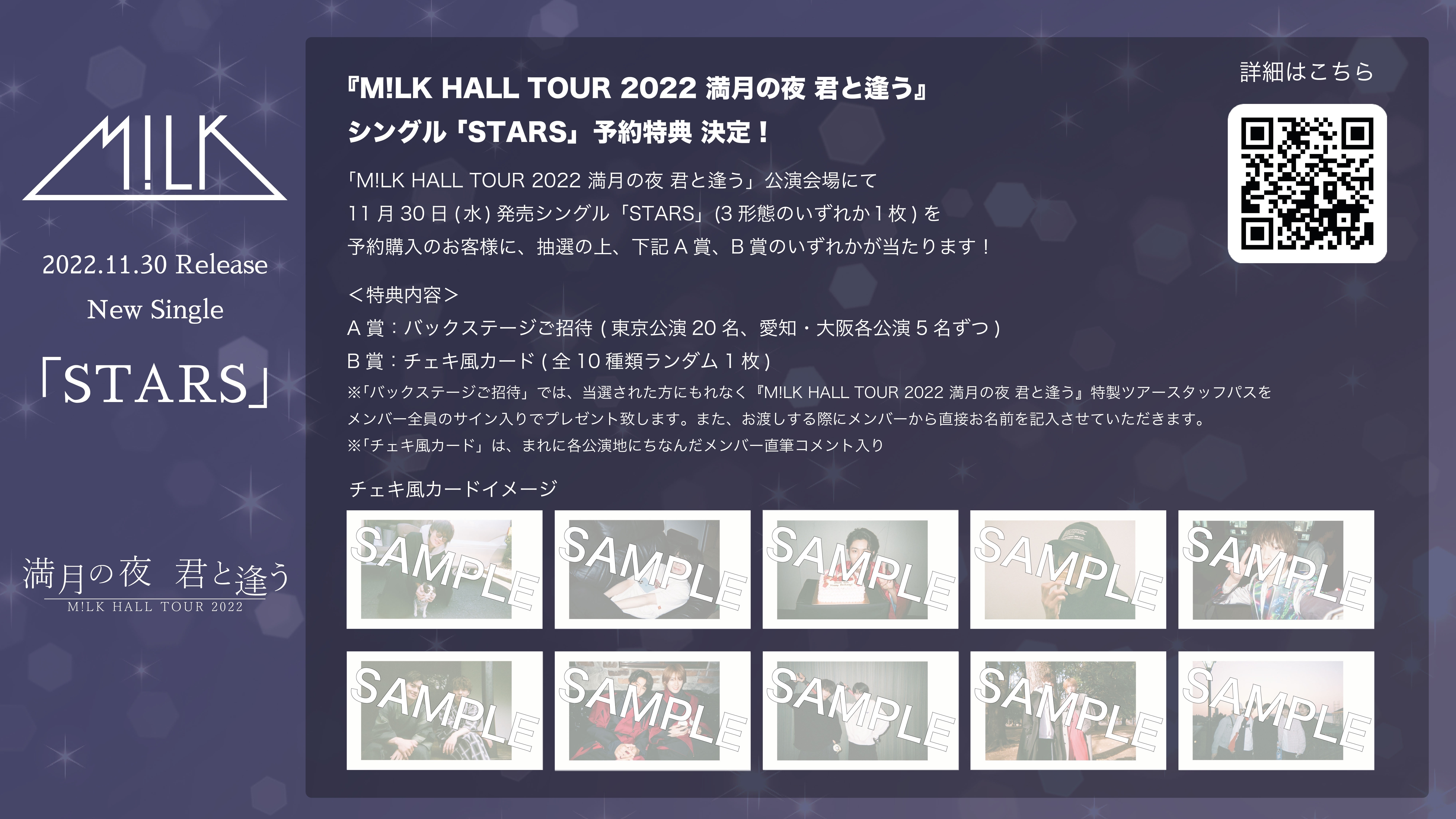 「M!LK HALL TOUR 2022 満月の夜 君と逢う」【10/8、9愛知公演】CD先行予約時間のお知らせ