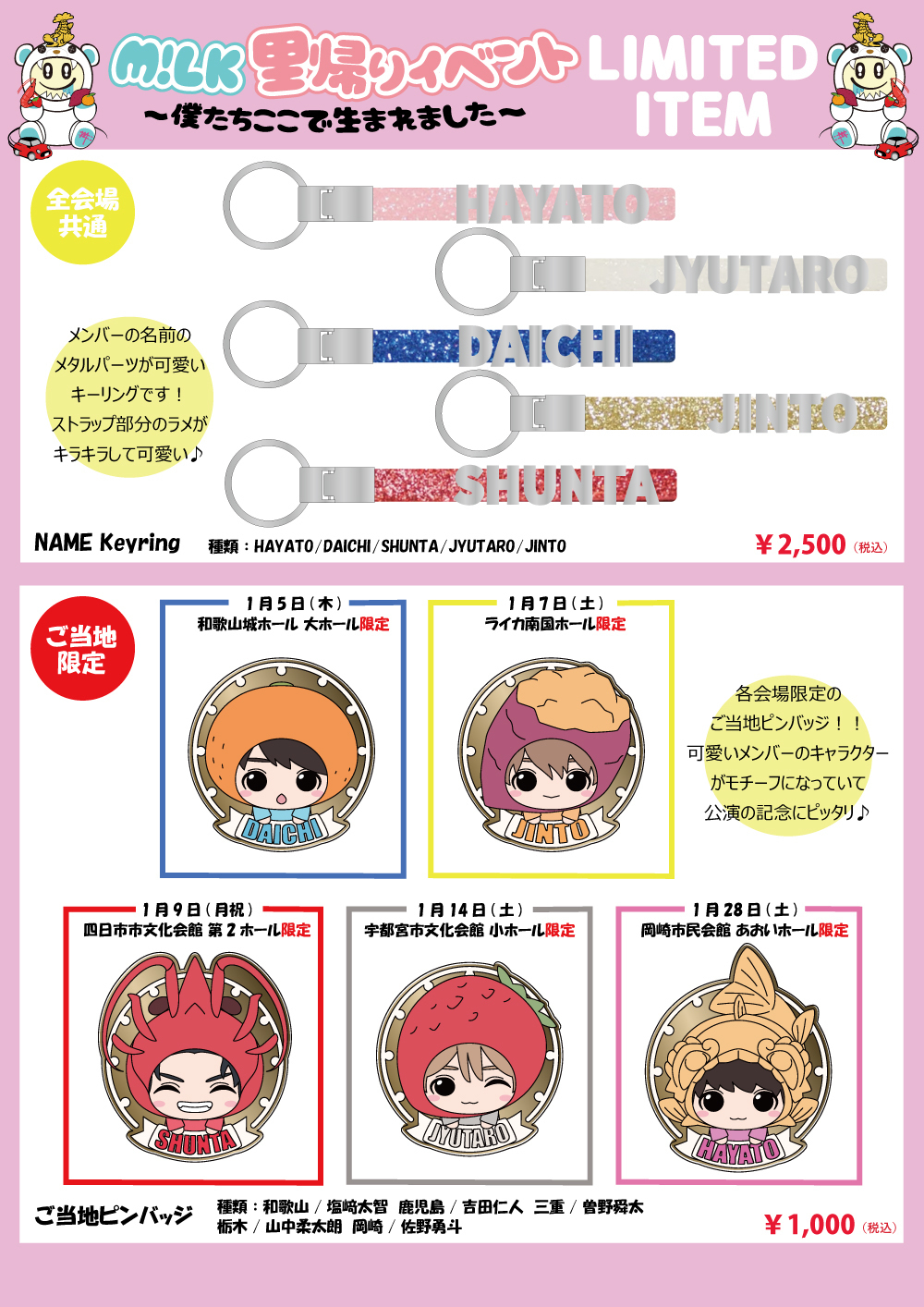 「M!LK 里帰りイベント 〜僕たちここで生まれました〜」公演、オフィシャルグッズ会場 販売のお知らせ!