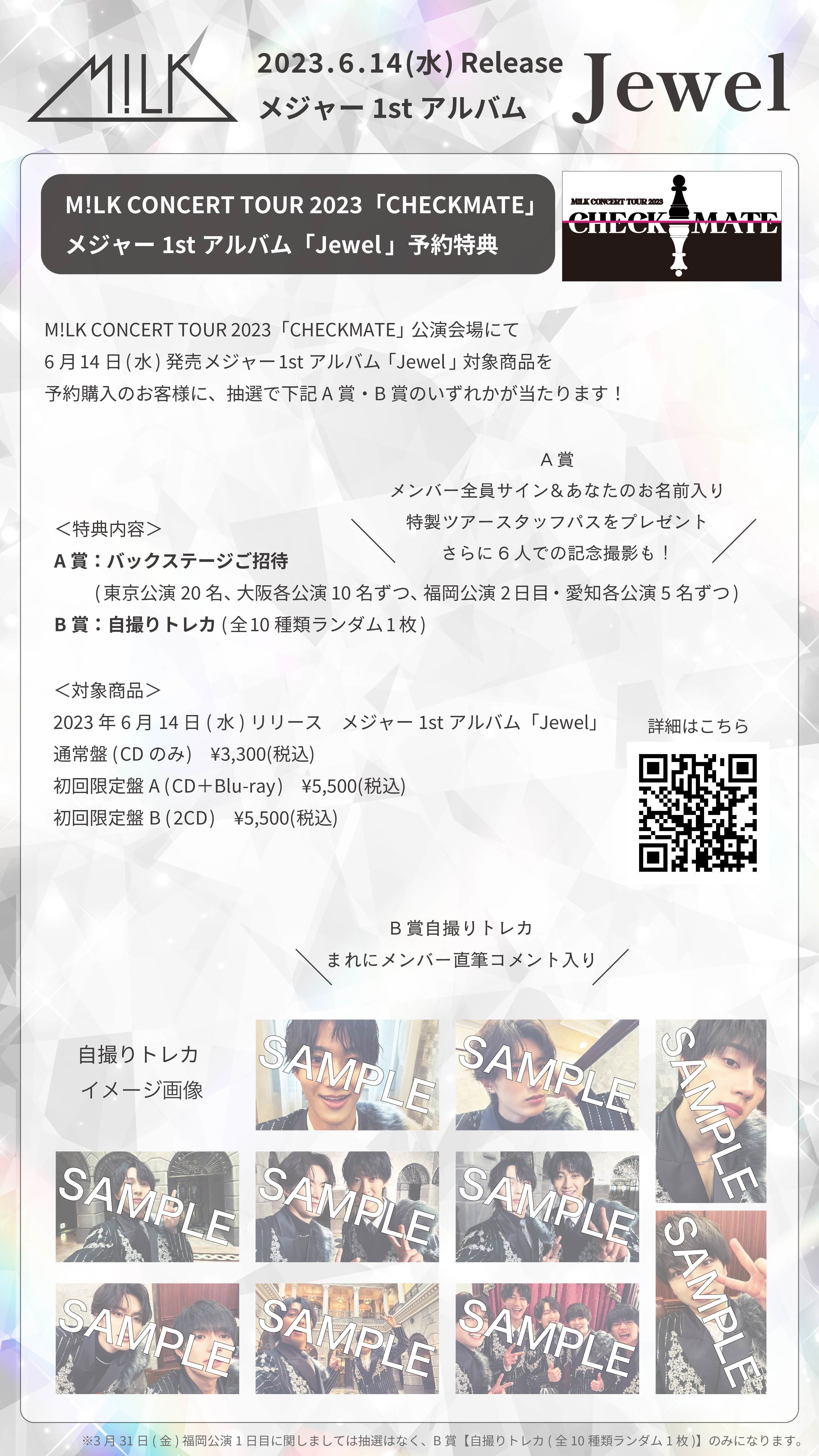 『M!LK CONCERT TOUR 2023「CHECKMATE」』 メジャー1stアルバム「Jewel」予約特典 決定!(※5/3更新)