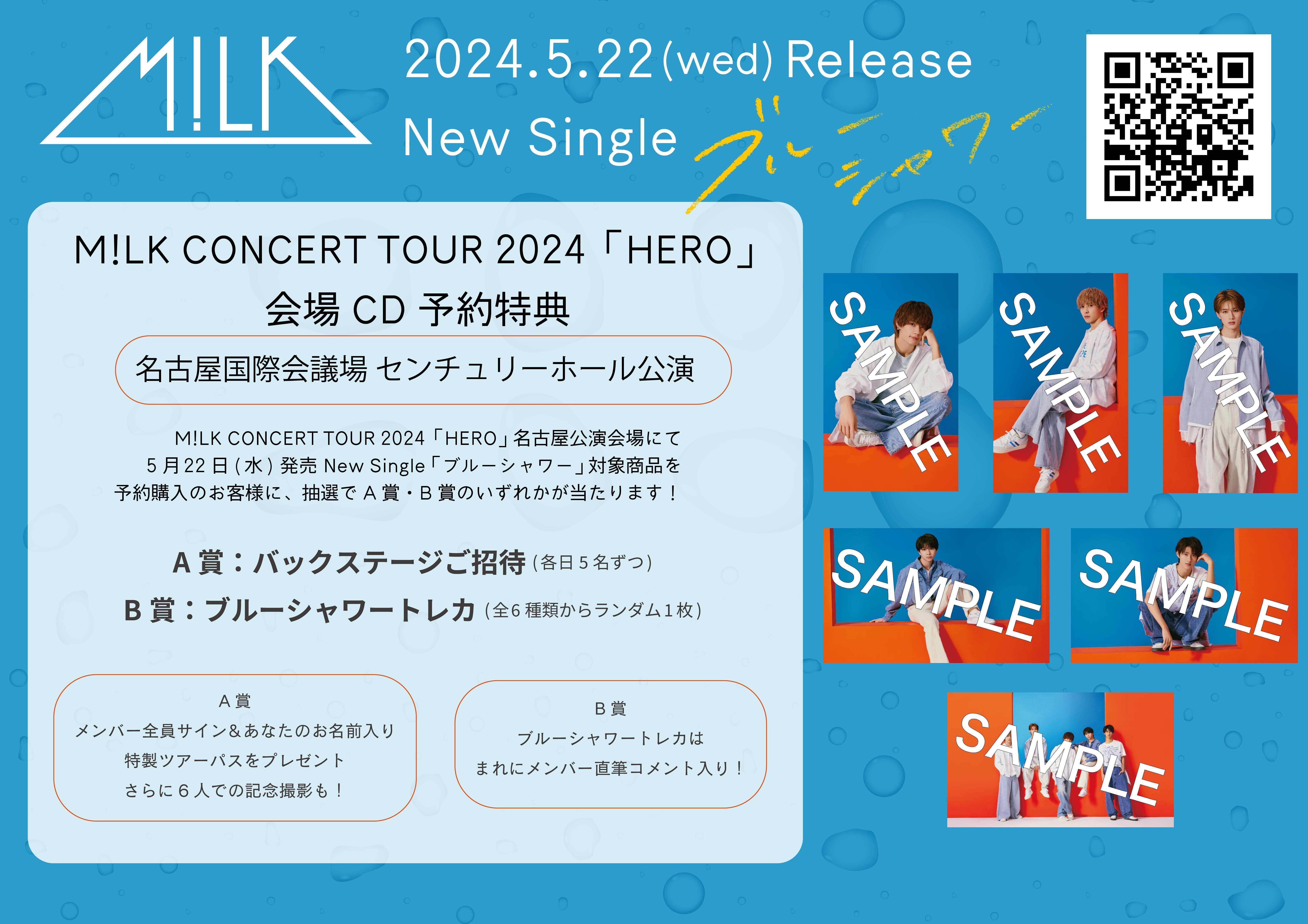 4月13日(土)、14日(日)開催M!LK CONCERT TOUR 2024「HERO」 (名古屋国際会議場 センチュリーホール公演)会場にてCDをご予約のお客様に「抽選」の上、下記A/B賞いずれかを差し上げます。