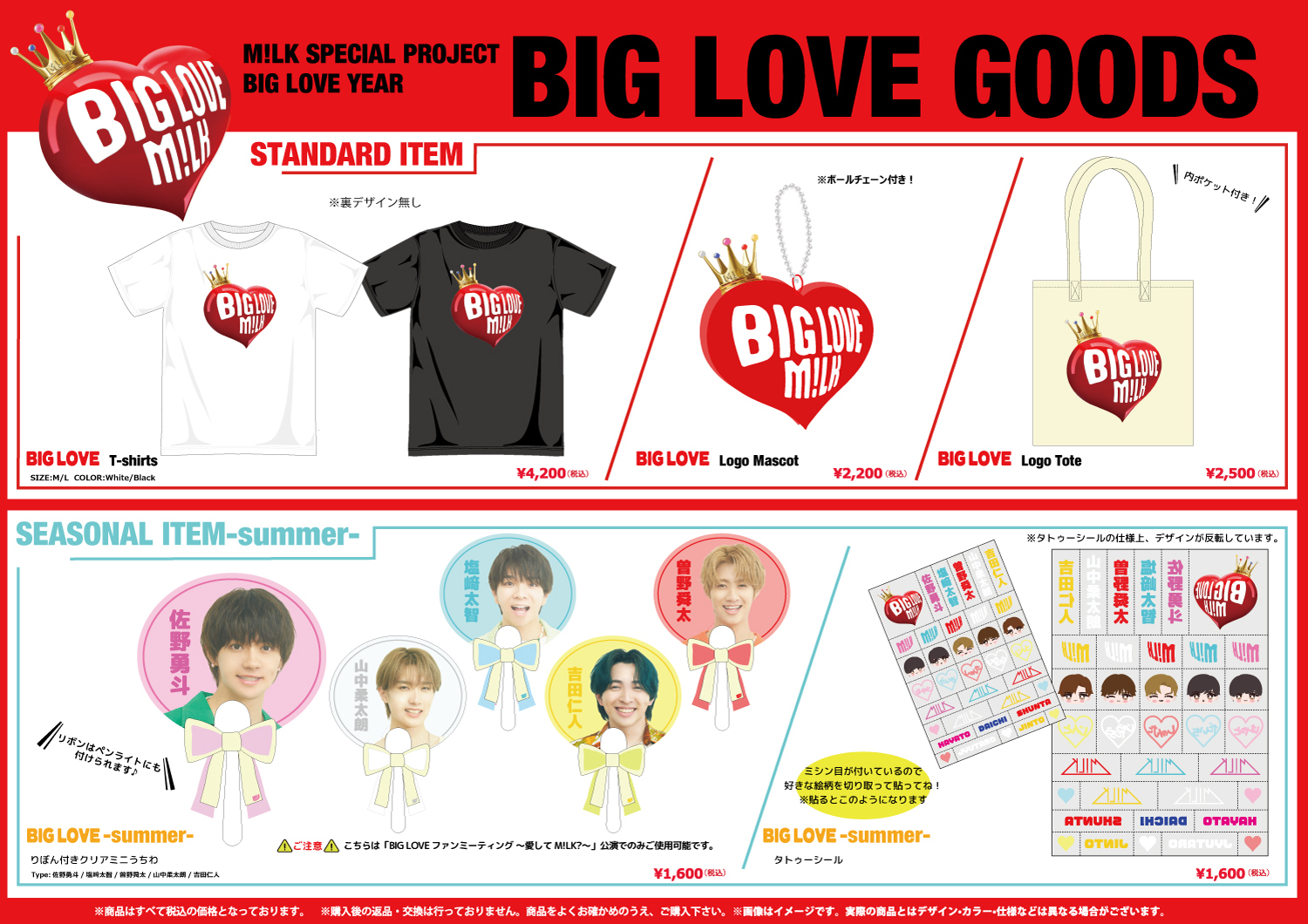 8月4日(日)開催の「BIG LOVE ファンミーティング ~愛してM!LK?~」奈良公演にて、オフィシャルグッズの会場販売を行います!!