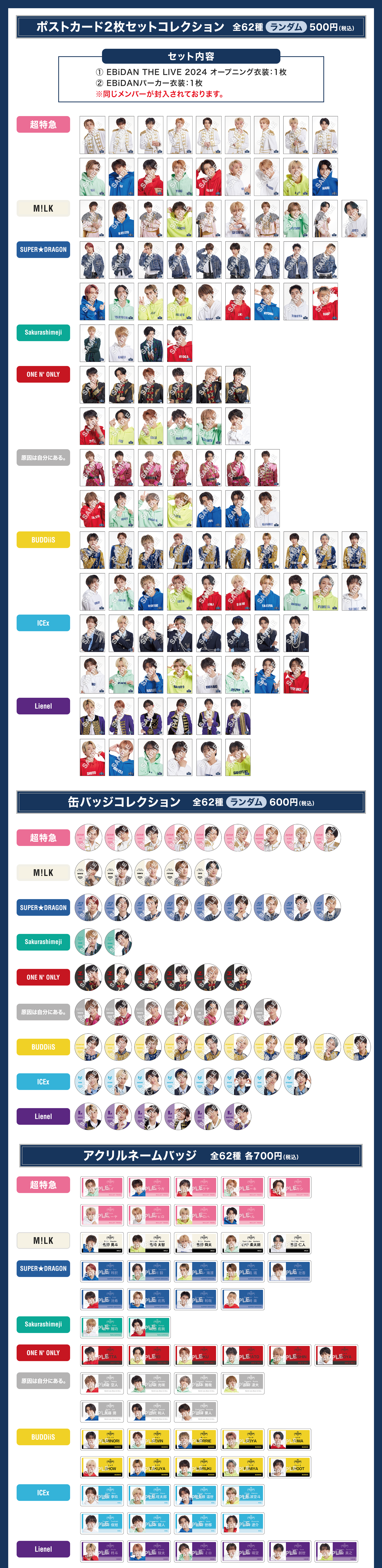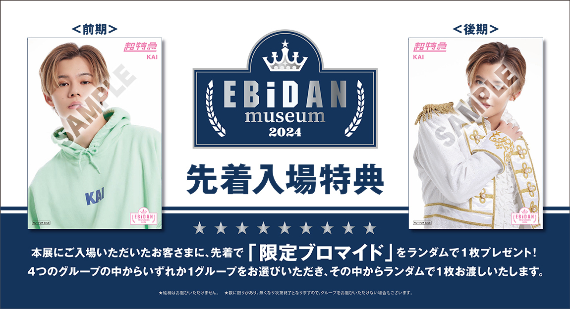 「EBiDAN museum 2024」の入場券をご購入いただいたお客様に、先着で「限定ブロマイド」をランダムで1枚プレゼントいたします。