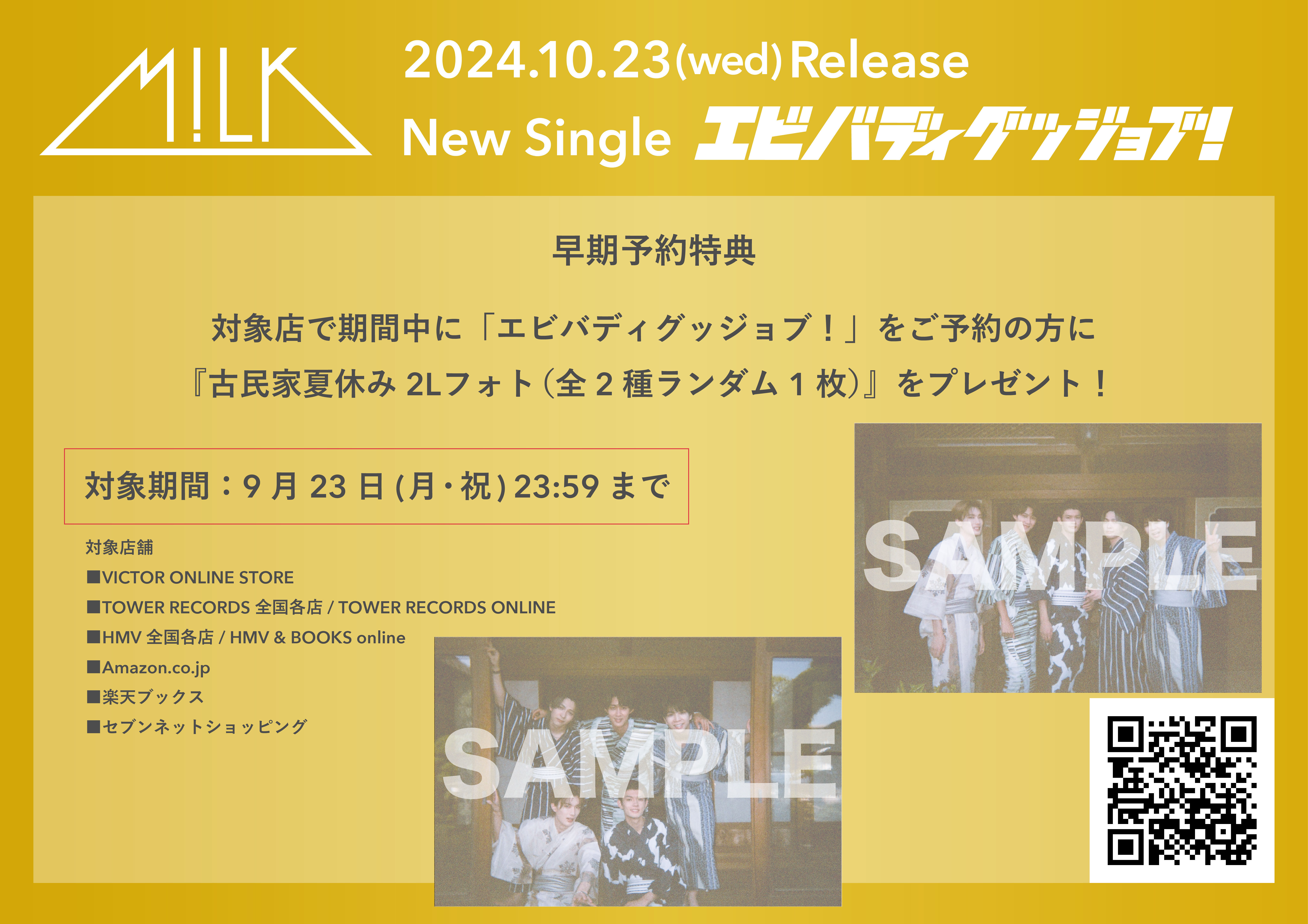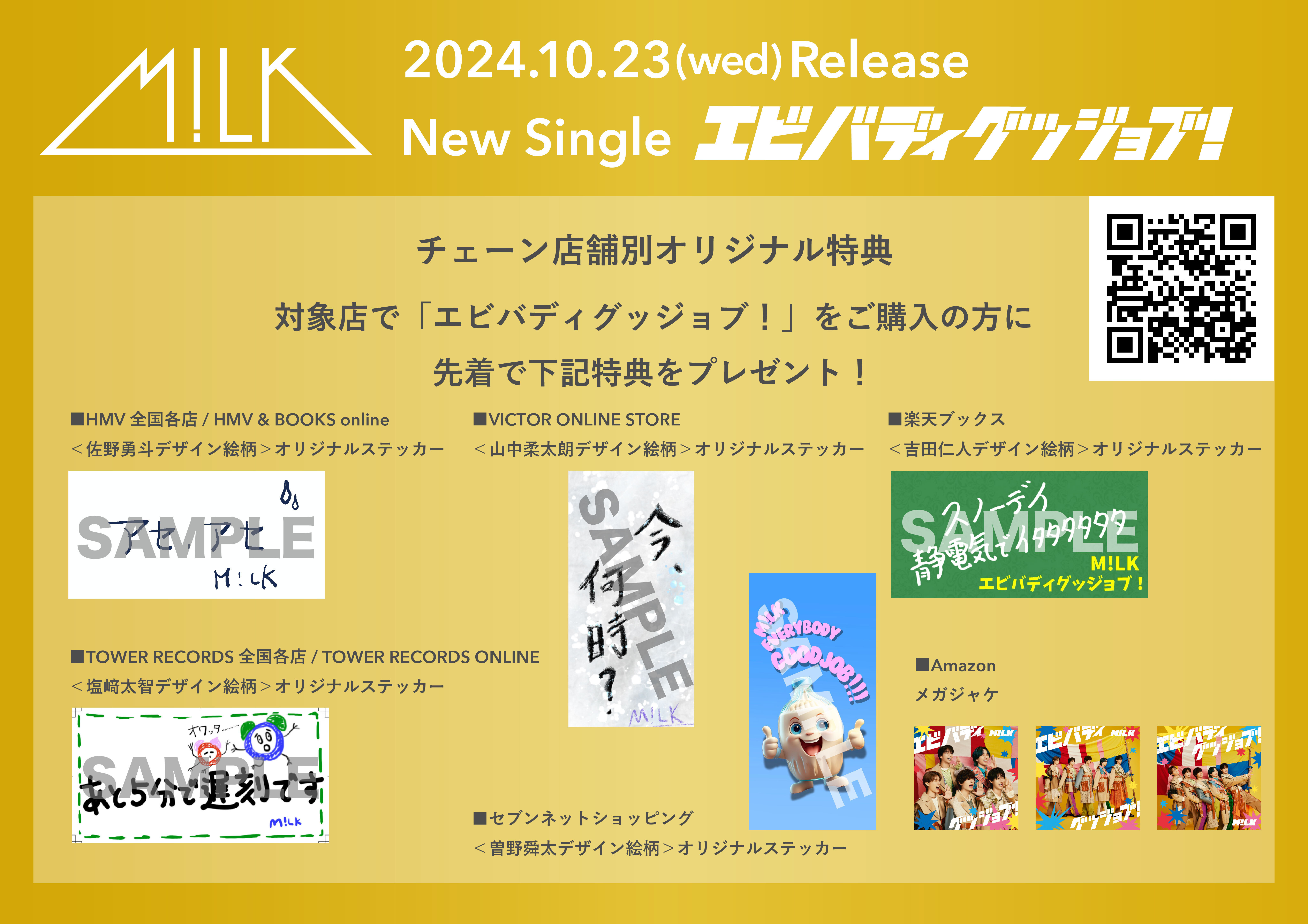 M!LK、10月23日(水)リリースNew Single「エビバディグッジョブ!」発売記念 FC限定セット、早期予約特典、チェーン店舗別特典、詳細決定!
