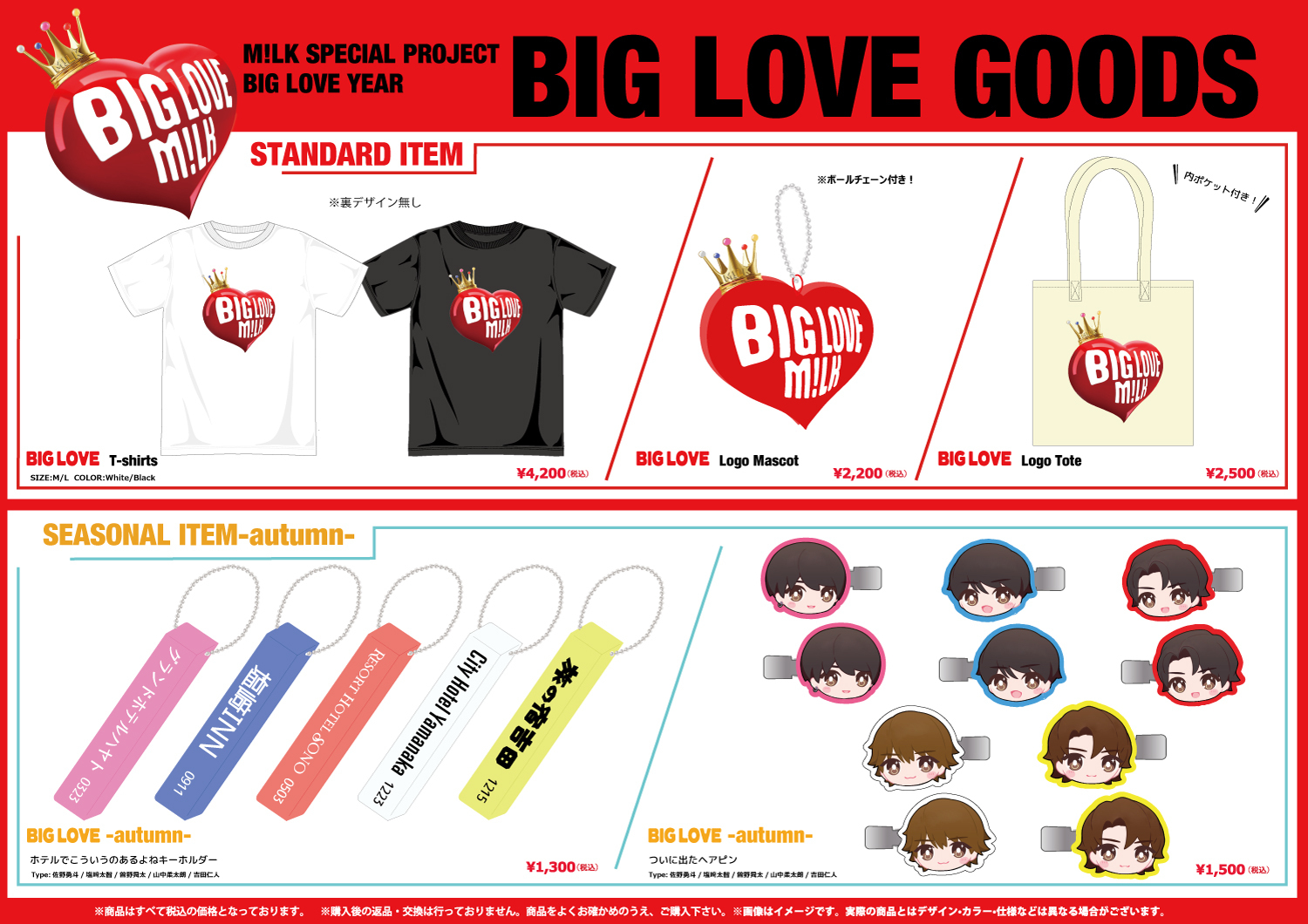 『BIG LOVE ファンミーティング 〜愛してM!LK?〜』〈群馬公演〉にて、オフィシャルグッズの販売が決定しました!