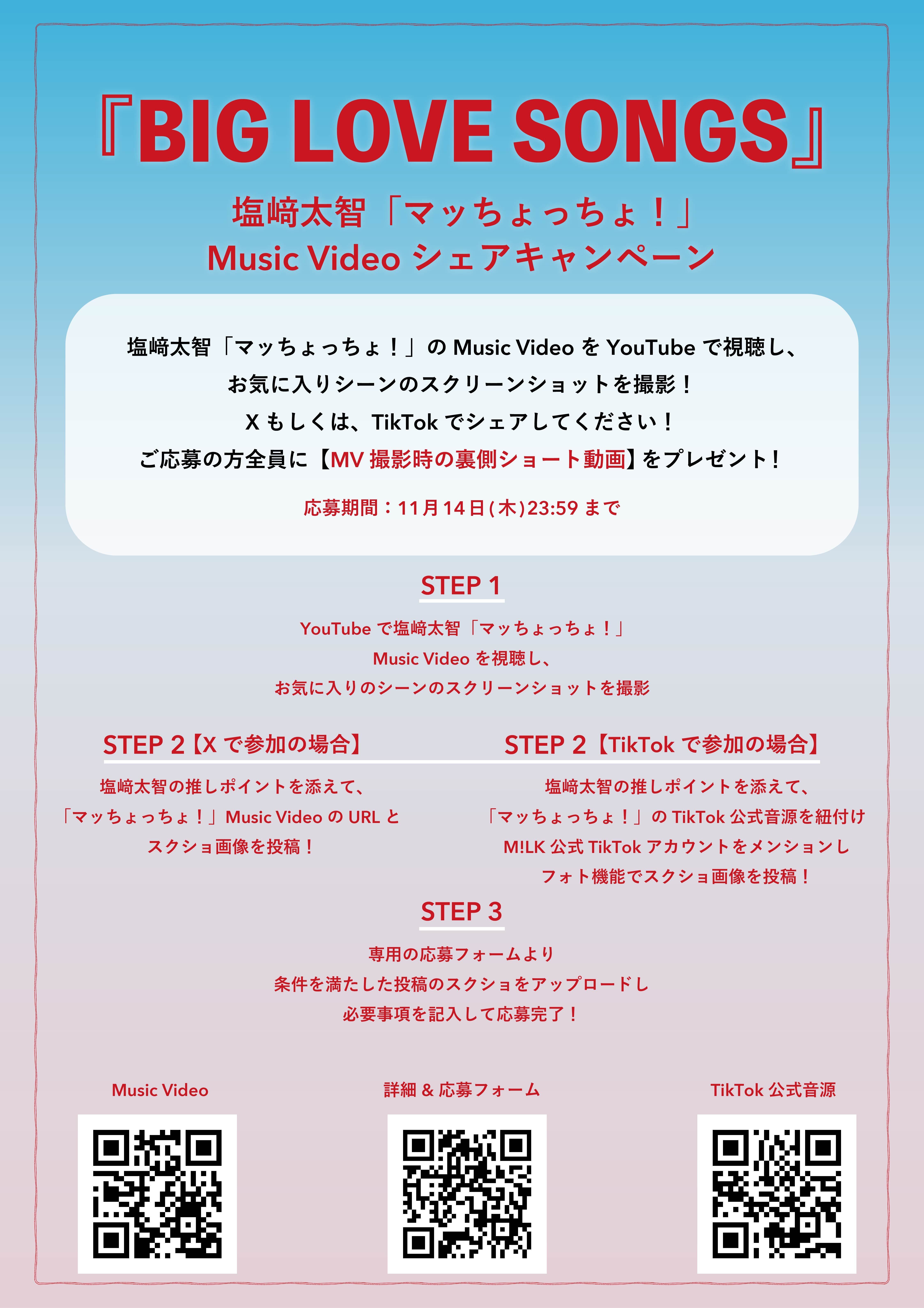 塩﨑太智「マッちょっちょ!」Music Videoシェアキャンペーン開催!