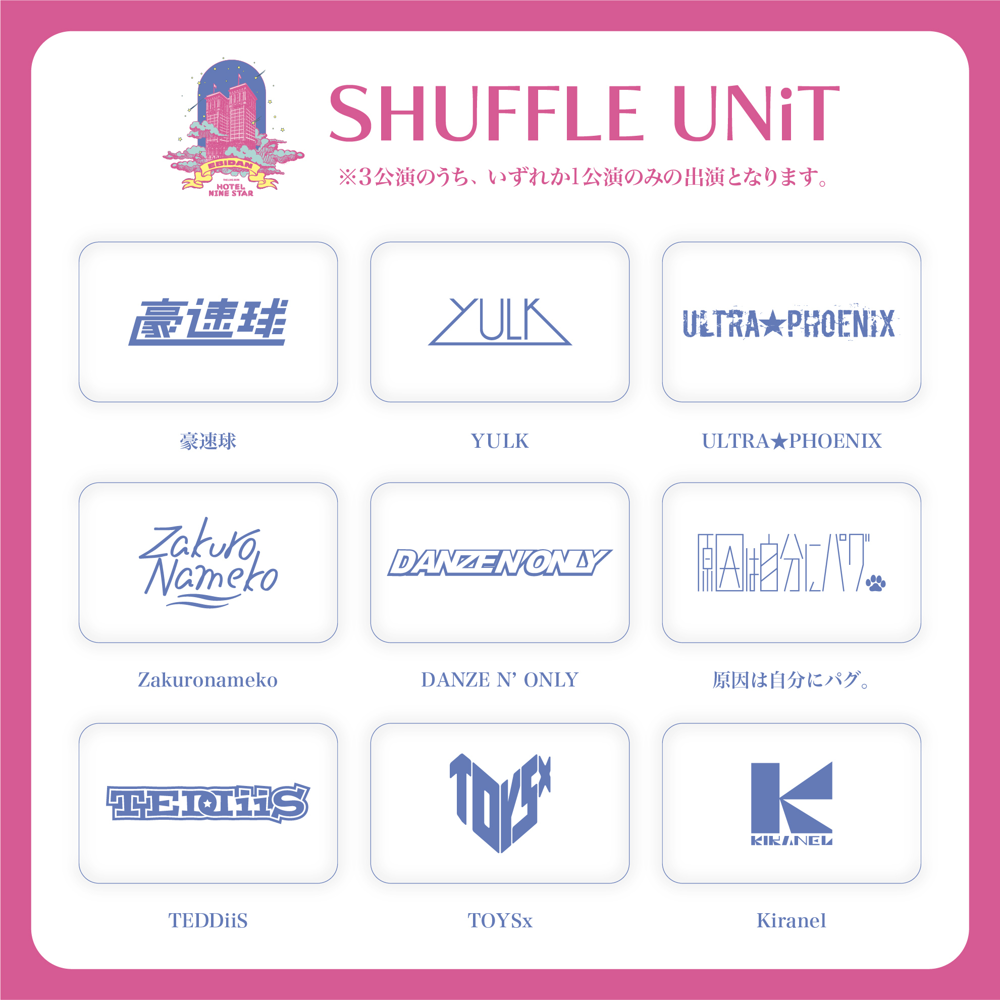 豪速球・YULK・ULTRA★PHOENIX・Zakuronameko・DANZE N’ ONLY・原因は自分にパグ。・TEDDiiS・TOYSx・Kiranel