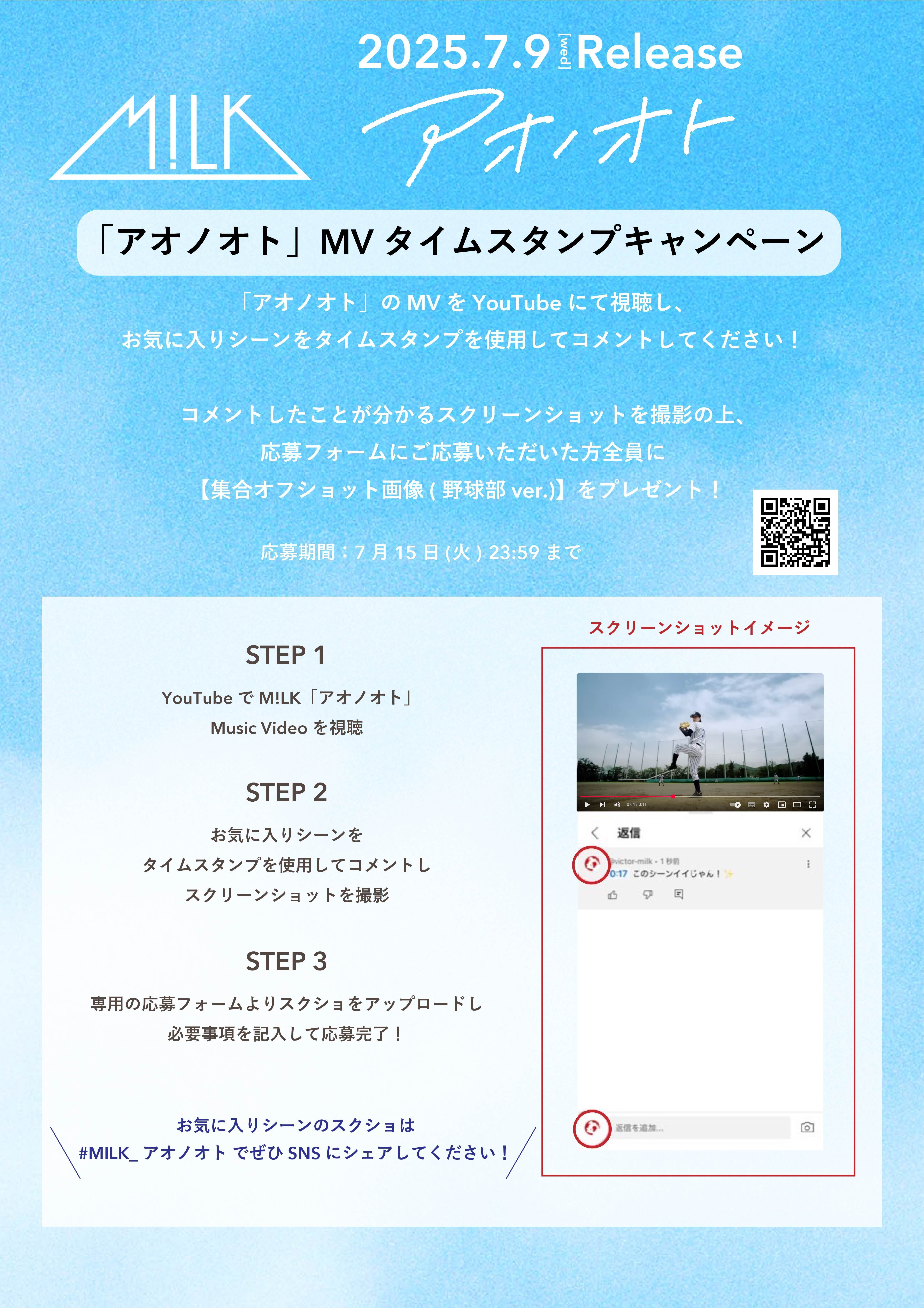 M!LK「アオノオト」MVタイムスタンプキャンペーン開催!