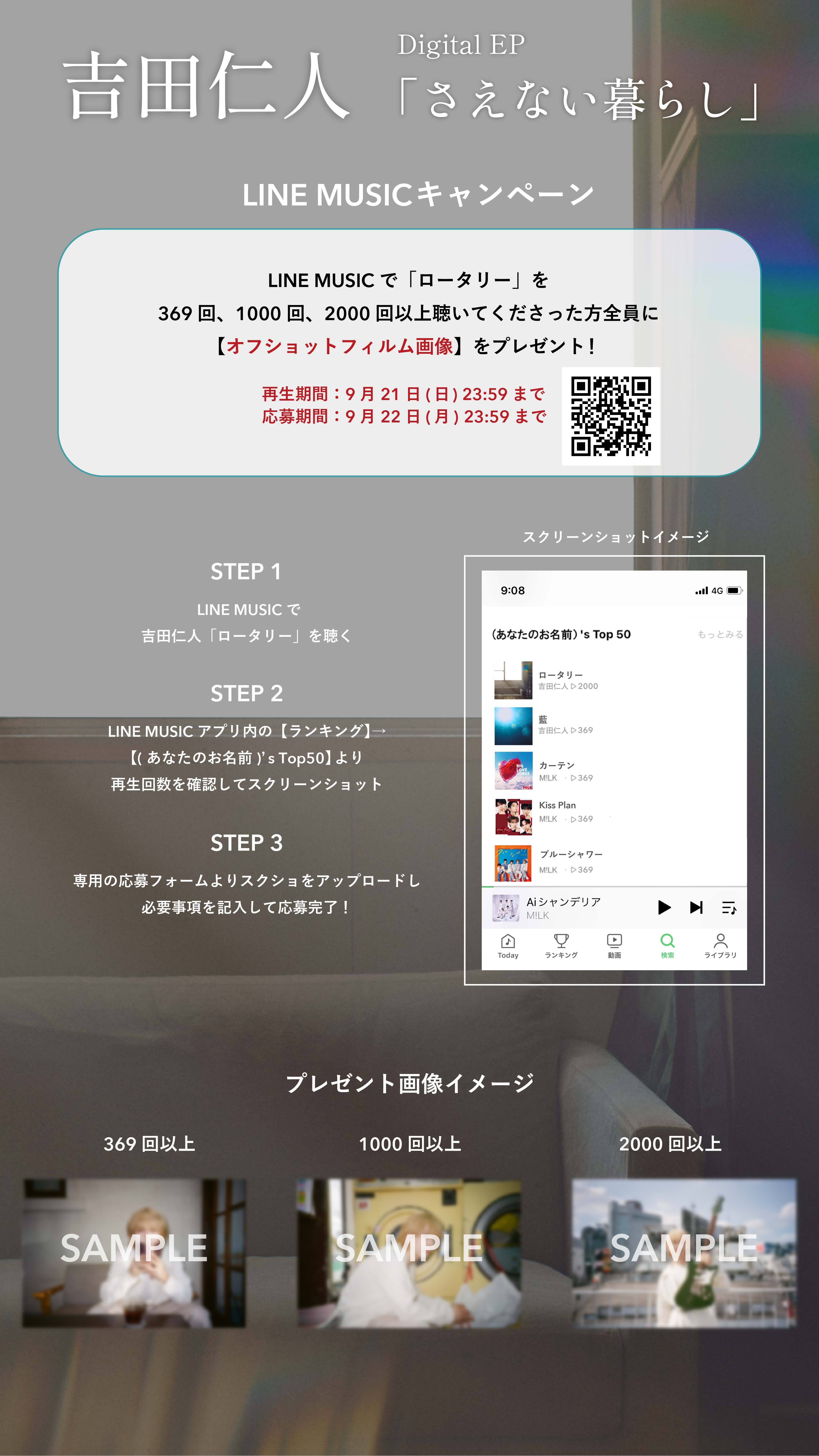 8月4日(月)の吉田仁人Digital EP『さえない暮らし』の配信スタートを記念して、LINE MUSIC再生キャンペーンが決定しました!