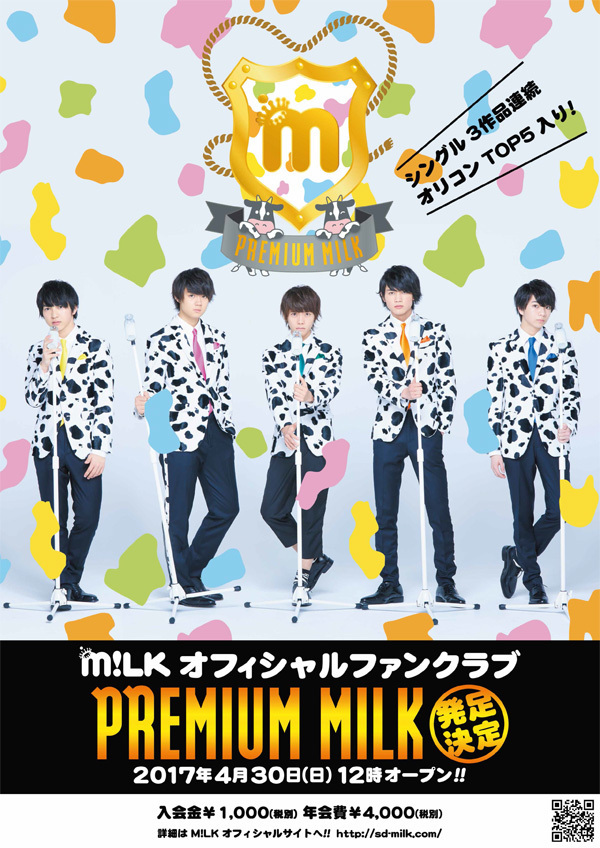 2017. 04.30 FC 本日『PREMIUM MILK』オープン! ついに、M!LKのオフィシャルファンクラブ『PREMIUM MILK』がオープン!!! ここだけでしか見られないM!LKがたくさん!!是非お楽しみください♪ ツイート シェア