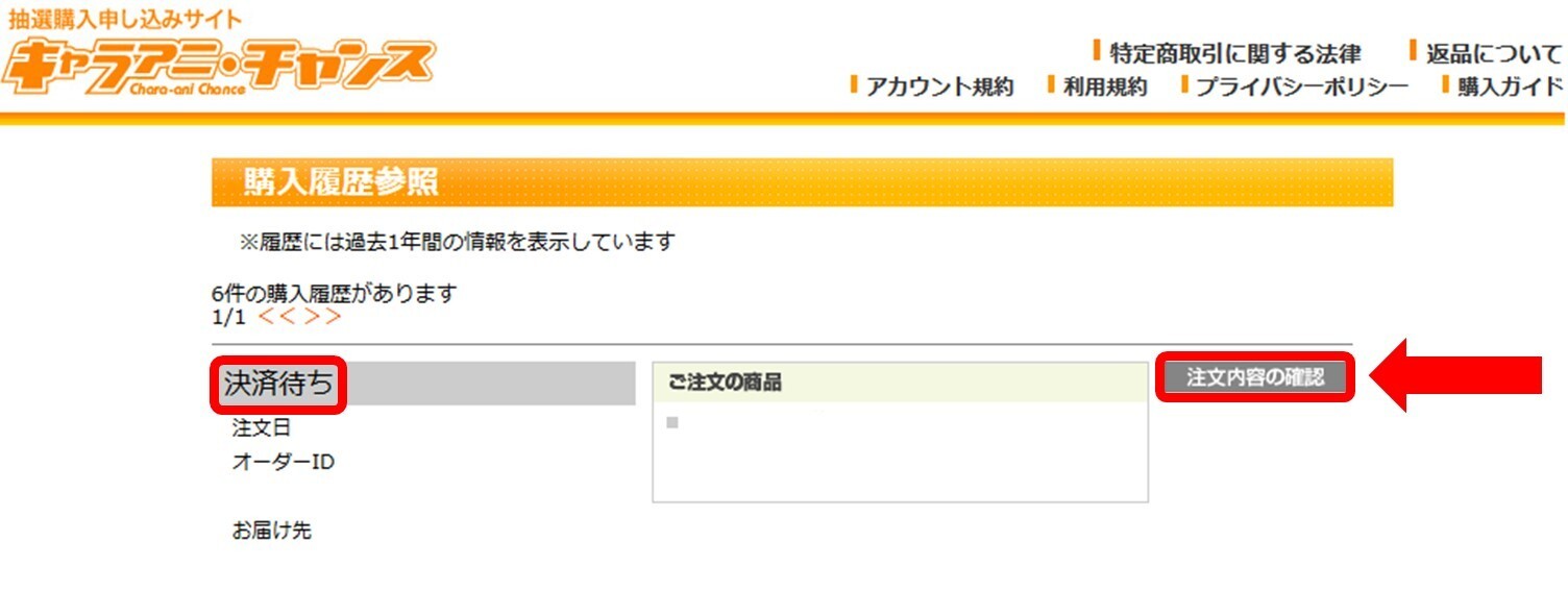 ※ご予約いただいた決済待ち商品の『注文内容の確認』をクリック