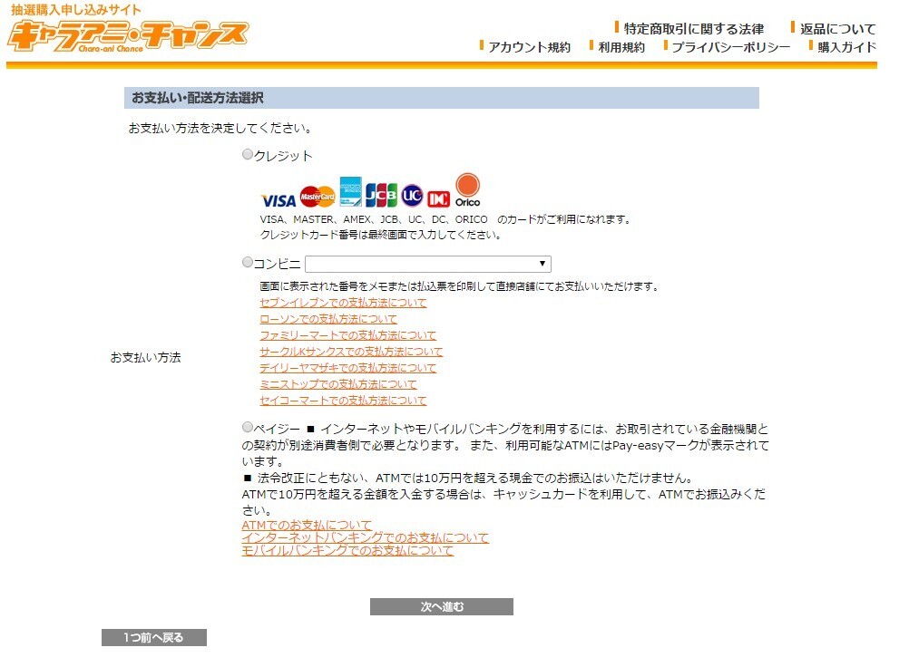② お支払い方法を選択し、画面の指示にしたがってお客様情報をご入力いただき、