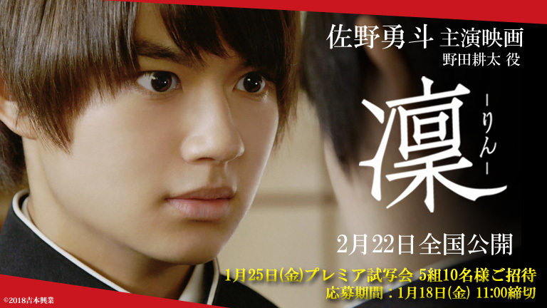 佐野勇斗 主演映画「凜‐りん‐」公開一か月前!プレミア試写会にご招待!