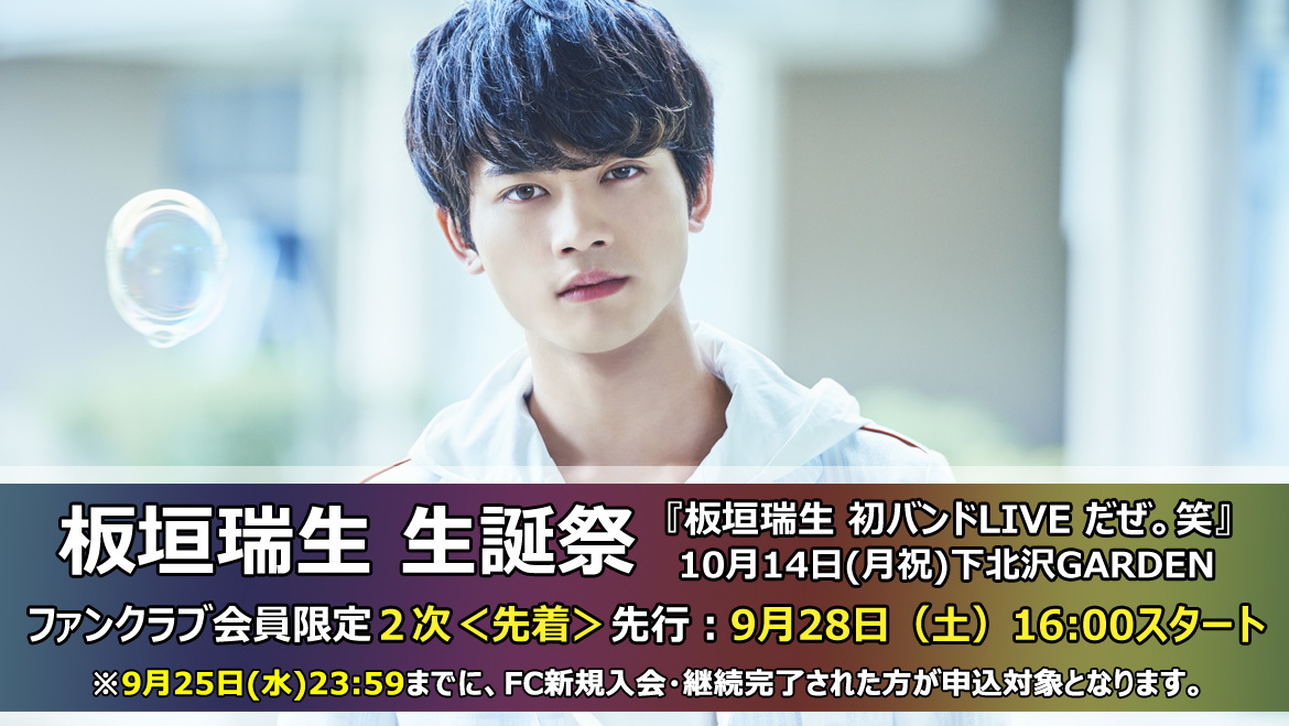 【FC2次受付<先着>情報】板垣瑞生 生誕祭『板垣瑞生 初バンドLIVE だぜ。笑』開催決定!!