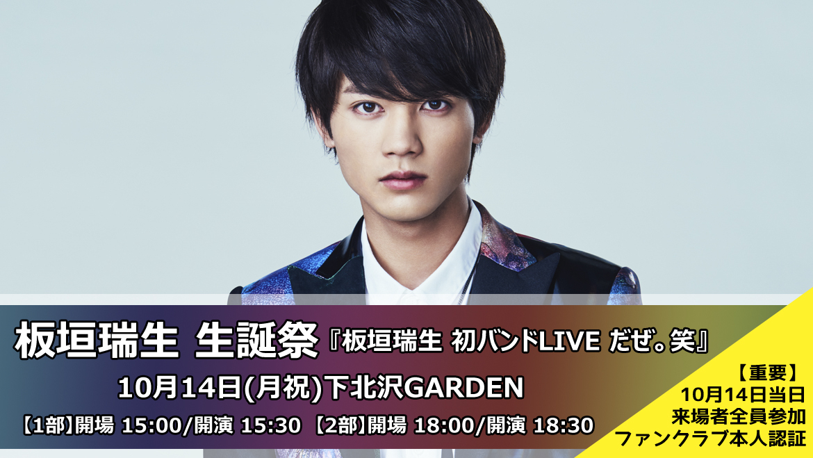 板垣瑞生 生誕祭 『板垣瑞生 初バンドLIVE だぜ。笑』、ファンクラブ本人認証のご案内