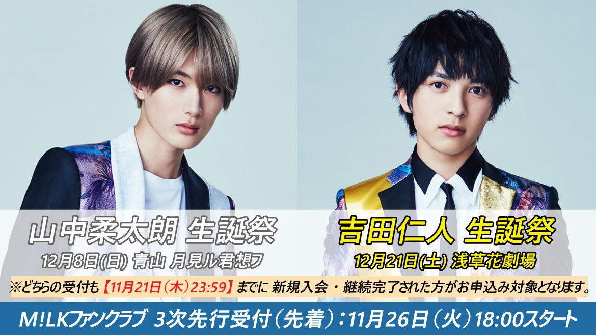 「山中柔太朗 生誕祭」「吉田仁人 生誕祭」ファンクラブ3次受付(先着)情報!