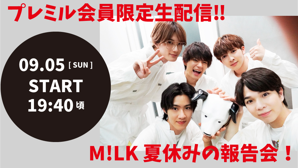 【FC限定】9/5(日)『M!LK 夏休みの報告会!』PREMIUM MILKサイト内にて生配信決定!