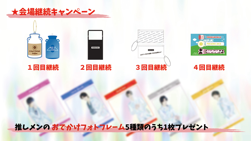 ※【PREMIUM MILK発足記念『5周年突入キャンペーン 第3弾』】にエントリーされている方は、会場にてご継続の場合、エントリーを無効とさせていただきます。