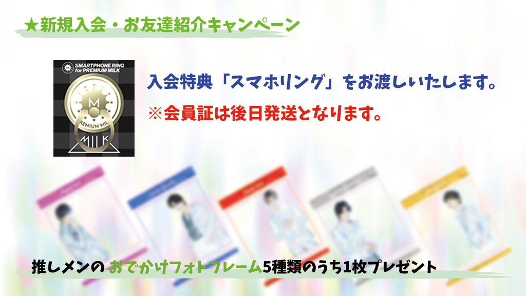 ※お友達紹介は、新規入会者1名様に対し、「PREMIUM MILK」既存会員1名様が対象となります。