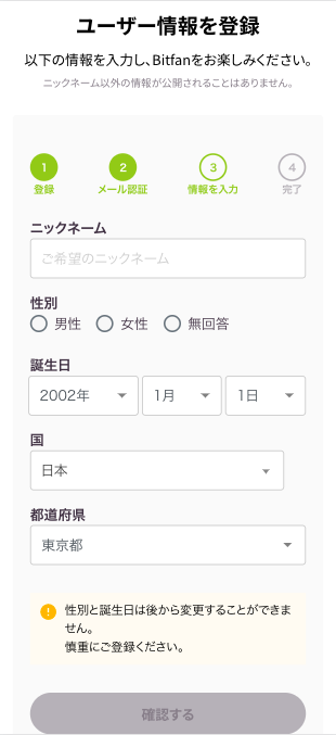 ※こちらで入力した情報は後から編集・変更不可能です。慎重にご登録ください。