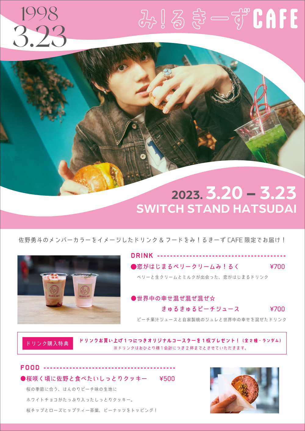 3月18日(土)午前10:00より佐野勇斗 BIRTHDAY EVENT「み!るきーずカフェ」のオフィシャルファンクラブ会員限定チケット2次受付(先着)が決定いたしました!