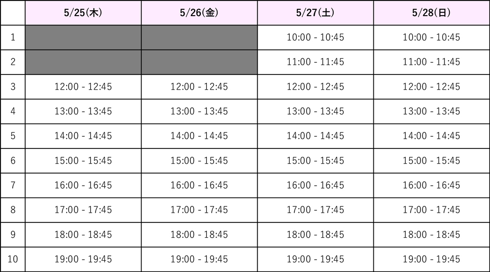 ■開催期間:2023年5月25日(木)〜5月28日(日) ※45分完全入替制