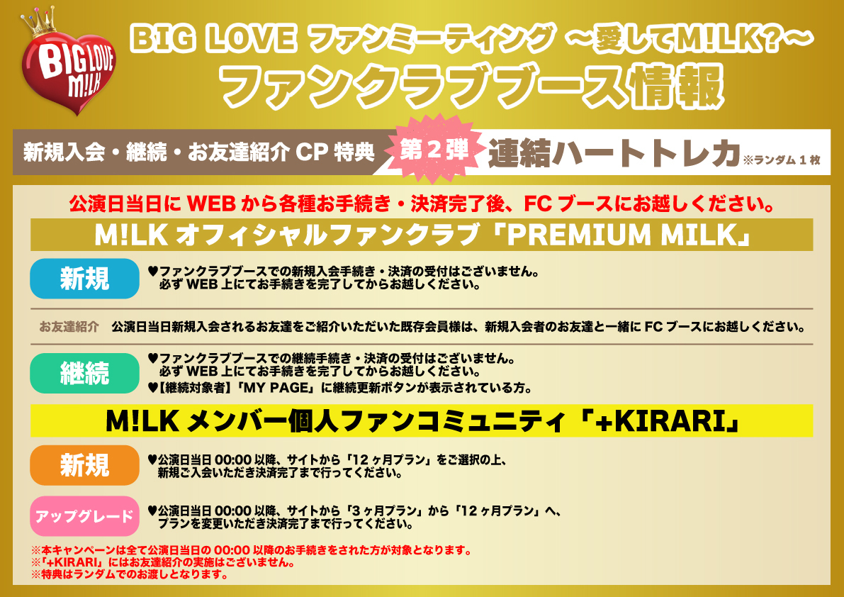 2024年4月29日(月祝)広島公演、30日(火)香川公演にて「BIG LOVE ファンミーティング 〜愛してM!LK?〜」ファンクラブブースの詳細が決定いたしました!