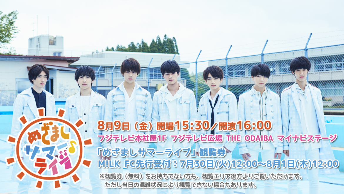 M!LK出演「めざましサマーライブ」観覧券、M!LKファンクラブ会員限定先行受付<抽選>