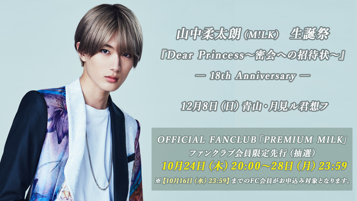 山中柔太朗 生誕祭 『Dear Princess~密会への招待状~』PREMIUM MILK会員限定先行受付<抽選>