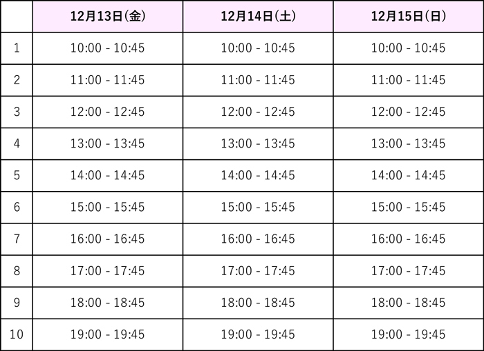 ■開催期間:2024年12月13日(金)〜12月15日(日) ※45分完全入替制